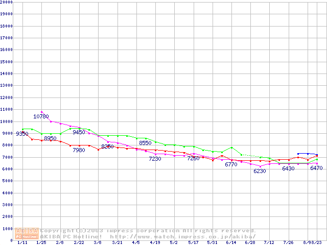 | [↓次グラフ]: | HDD 60GB~80GB未満(7200rpmクラス)の最安値推移 |