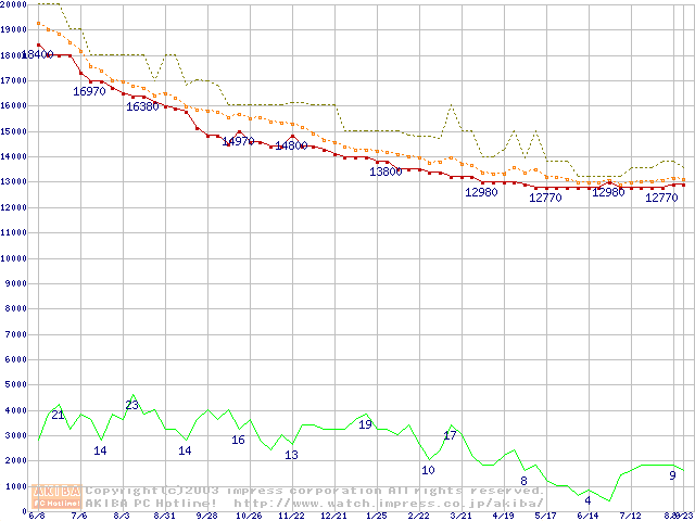 MKシリーズ (9.5mm,4200rpm,2MB,FDB,20GB/Platter)の最安値推移