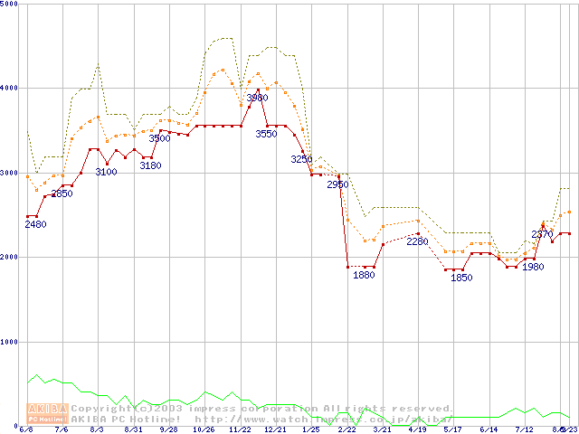 PC2100(DDR266) DDR SDRAM DIMM(CL 2.0)の最安値推移