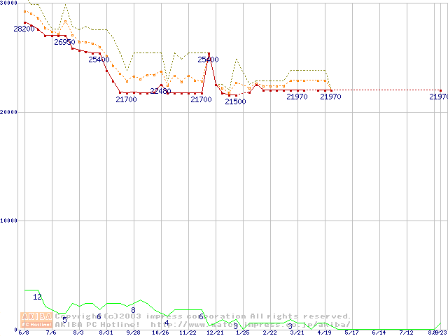Socket 603 (micro-PGA,FSB 400MHz,L2 512KB,Prestonia)の最安値推移