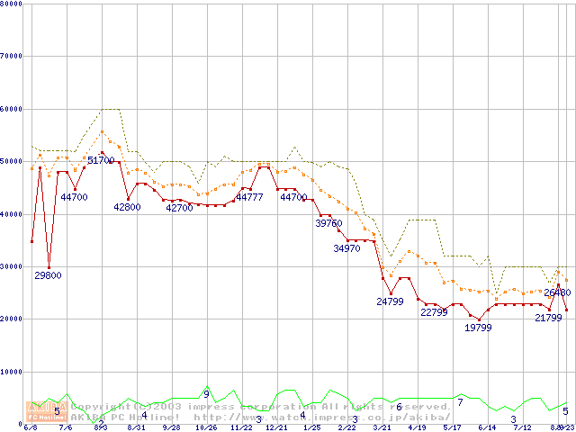 PC2100(DDR266) DDR SDRAM DIMM(CL 2.5)の最安値推移