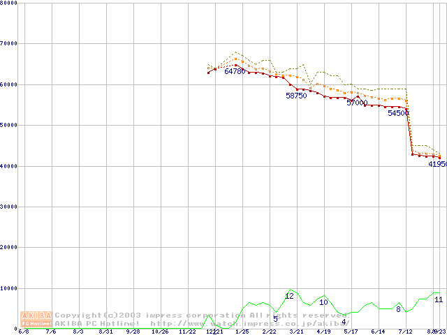 Xeon 2.80GHz(FSB533) リテールパッケージの価格推移