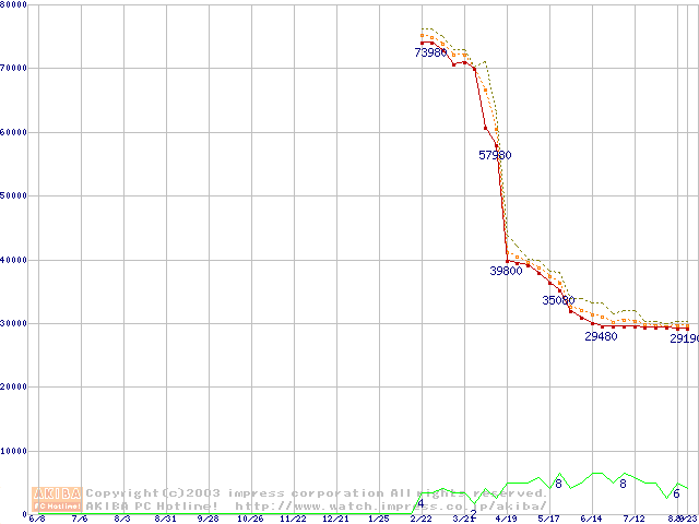 Socket A (OPGA,FSB 333MHz,L2 512KB,Barton)の最安値推移