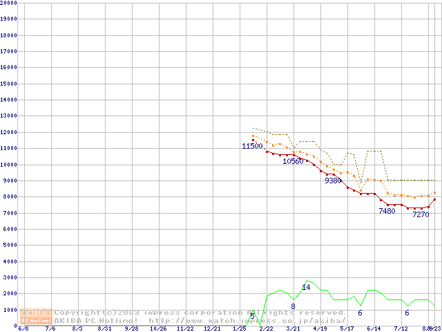 Socket A (OPGA,FSB 266MHz,L2 256KB,Thoroughbred)の最安値推移