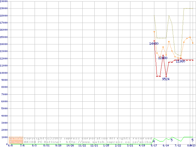 PC3200 DDR SDRAM 512MB(CL3) ECCの価格推移