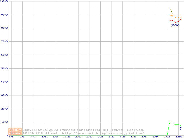 Socket 604 (micro-PGA,FSB 533MHz,L2 512KB,Prestonia)の最安値推移
