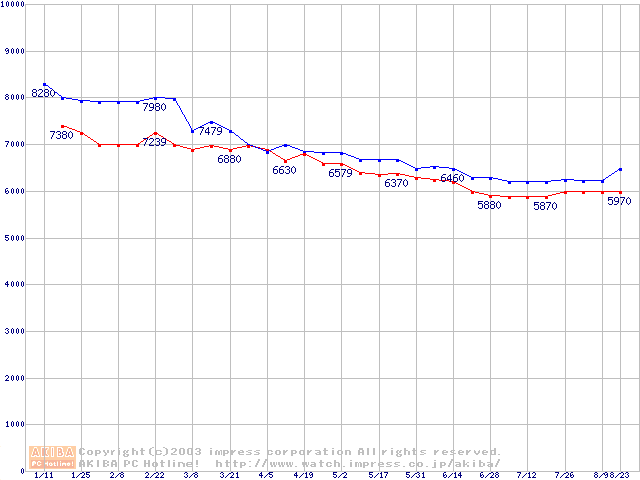 | Fireball 3 (5400rpm,UltraATA/133,2MB,FDB)の最安値推移 |