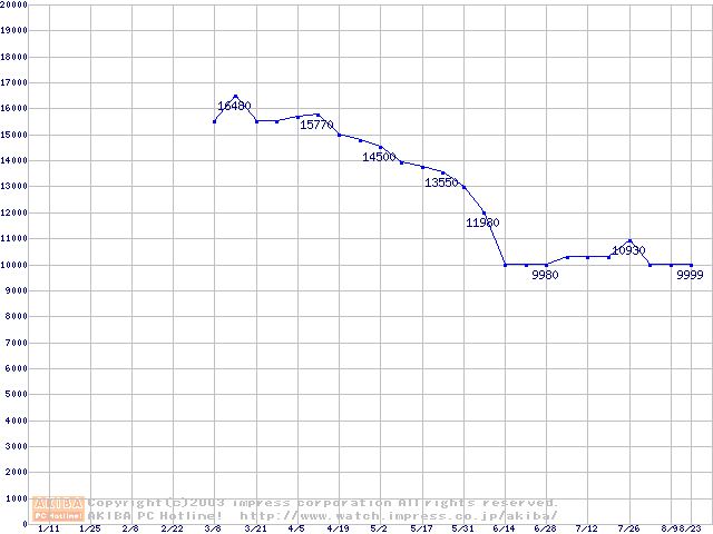 | [↓次グラフ]: | Barracuda 7200.7 (7200rpm,UltraATA/100,8MB,80GB/Platter,FDB)の最安値推移 |