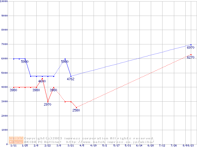 | [↓次グラフ]: | PC800-40 DRDRAM RIMMの最安値推移 |