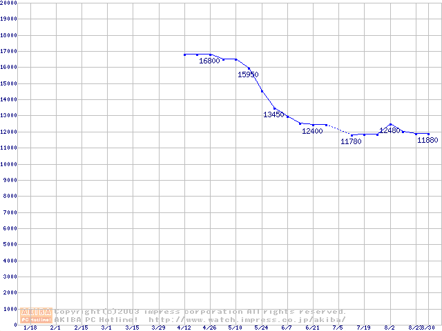 | [↑前グラフ]: | 2.5インチHDD 20GB~30GB未満(9.5mm厚)の最安値推移 |