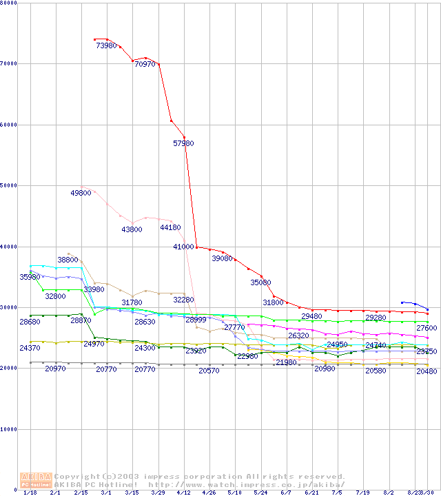 CPU主要製品(最安値2万円~3万円未満)の最安値推移