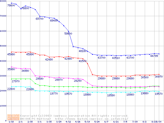 Socket A・FSB 200MHzの最安値推移