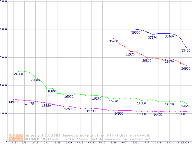 | [↓次グラフ]: | HDD 30GB~40GB未満(7200rpmクラス)の最安値推移 |