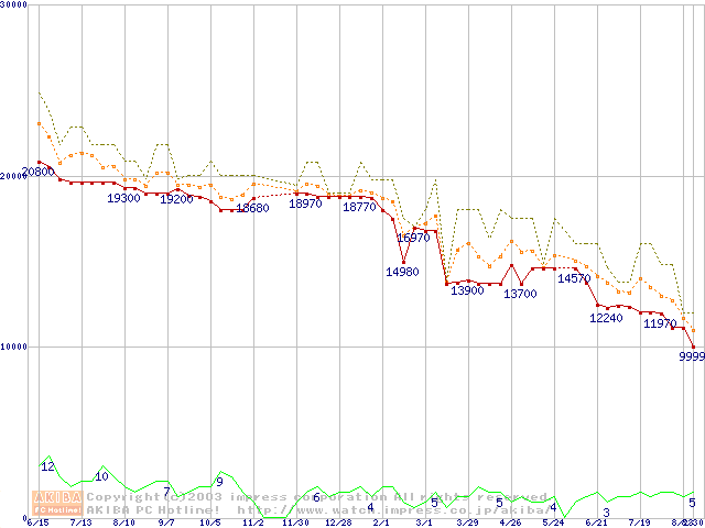 WD Caviar (7200rpm,UltraATA/100,2MB)の最安値推移