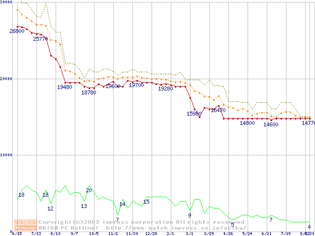 Athlon MP 2000+ (1.67GHz) リテールパッケージの価格推移