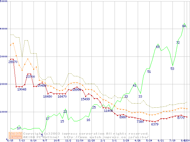 メモリ主要製品の最安値推移