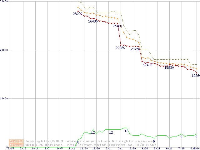 Socket A (OPGA,FSB 266MHz,L2 256KB,Thoroughbred)の最安値推移