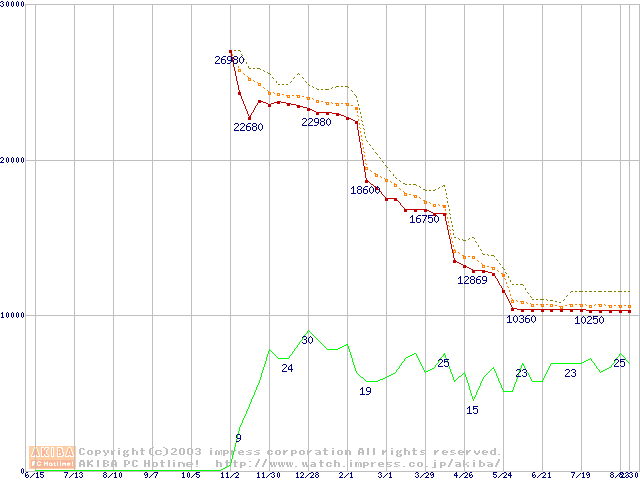 Socket A (OPGA,FSB 266MHz,L2 256KB,Thoroughbred)の最安値推移