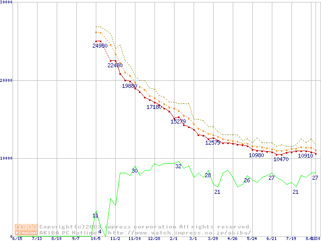 Deskstar 180GXP IC35L120AVV207-0 (120GB)の価格推移