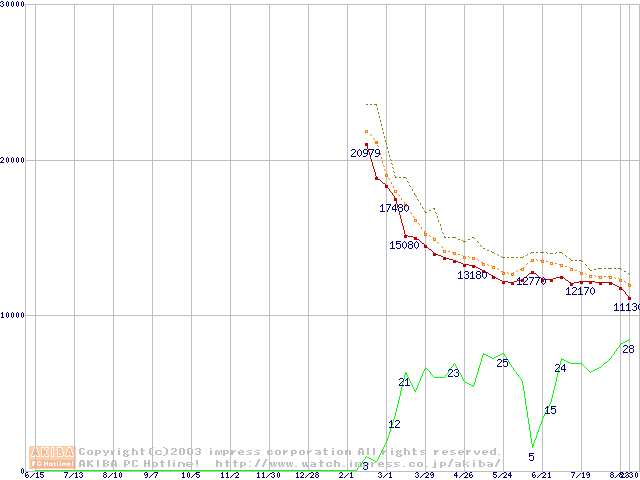 Deskstar 180GXP (7200rpm,8MB,UltraATA/100,FDB)の最安値推移