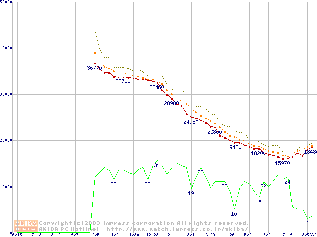 Deskstar 180GXP (7200rpm,8MB,UltraATA/100,FDB)の最安値推移