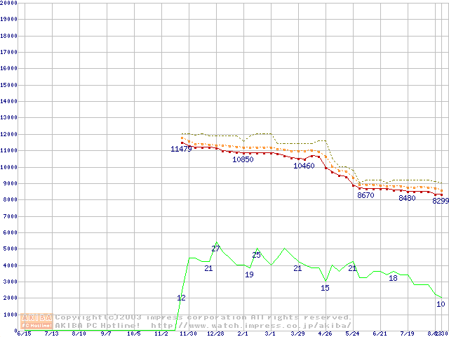 Socket 478 (micro-PGA,FSB 400MHz,L2 128KB,Northwood)の最安値推移