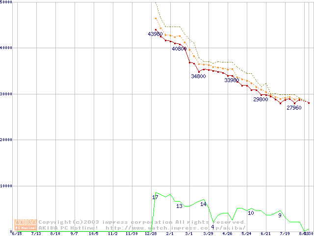 DiamondMax 16 (5400rpm,UltraATA/133,2MB,80GB/Platter,BB)の最安値推移