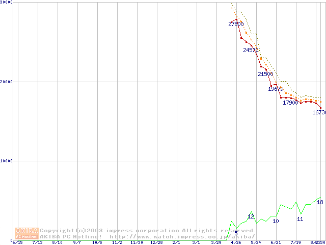 Barracuda 7200.7 (7200rpm,SerialATA,8MB,80GB/Platter,FDB)の最安値推移