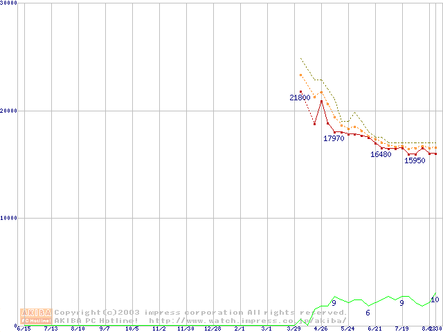 WD Raptor (10000rpm,SerialATA,8MB)の最安値推移
