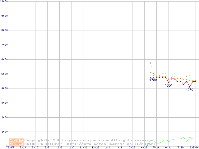 Socket 370 (PGA,FSB 133MHz,L2 64KB,Nehemiah)の最安値推移
