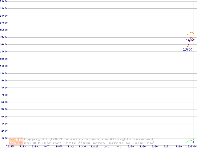 PC3200(DDR400) DDR SDRAM DIMM ECC対応 Registeredタイプの最安値推移
