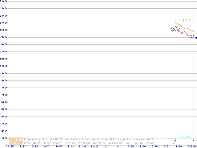 HDD主要製品(最安値1万5千円~2万円未満)の最安値推移