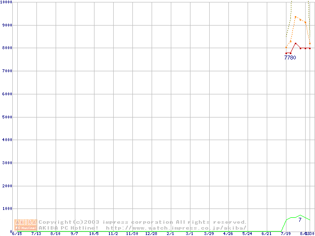 PC4000(DDR500) DDR SDRAM DIMMの最安値推移