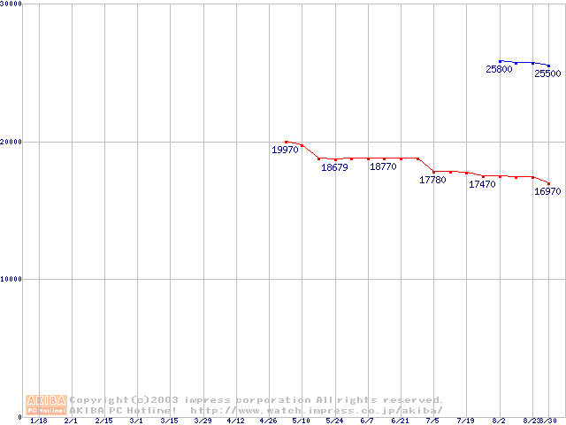 | [↓次グラフ]: | MHSシリーズ (9.5mm,4200rpm,UltraATA/100,2MB,FDB,30GB/Platter,FDB)の最安値推移 |