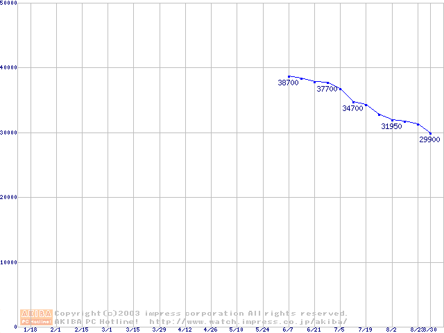 | [↑前グラフ]: | Travelstar DK23EA (9.5mm,4200rpm,UltraATA/100,512KB)の最安値推移 |