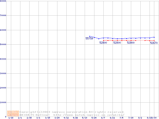 | [↓次グラフ]: | Socket A (OPGA,FSB 333MHz,L2 512KB,Barton)の最安値推移 |