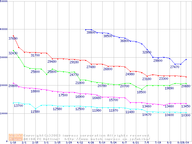 | [↑前グラフ]: | WD Caviar(Special Edition) (7200rpm,UltraATA/133,8MB)の最安値推移 |