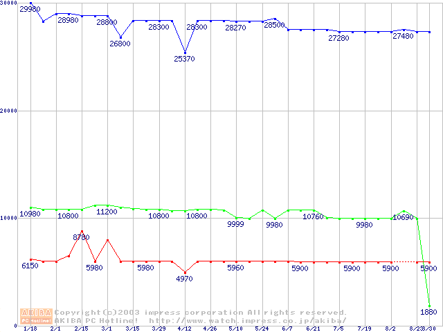 | [↓次グラフ]: | PC1066 DRDRAM RIMM ECC対応の最安値推移 |