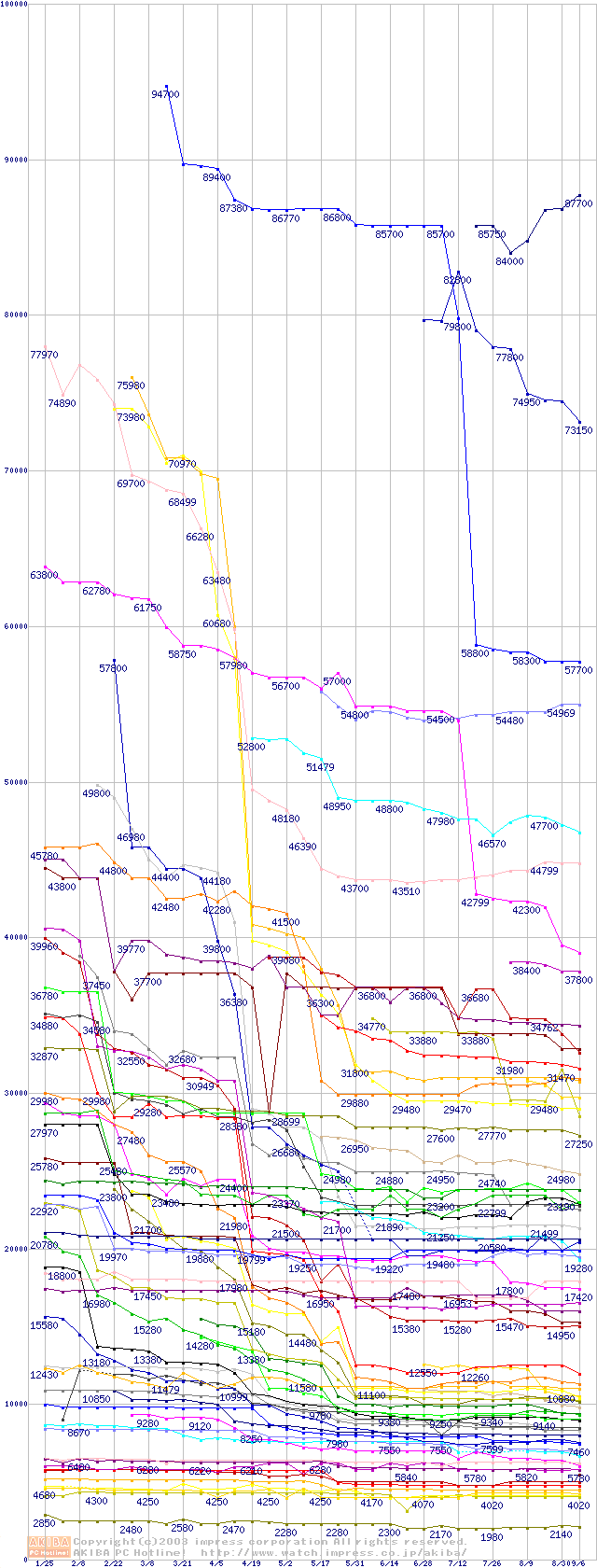 CPU主要製品の最安値推移
