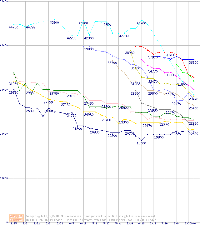 HDD主要製品の最安値推移
