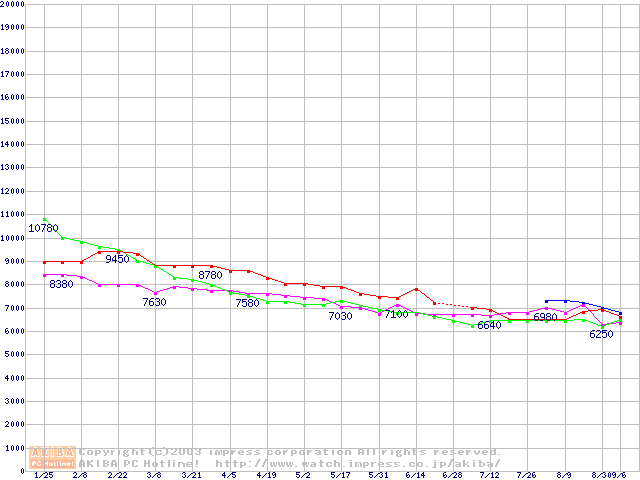 | [↓次グラフ]: | HDD 60GB~80GB未満(7200rpmクラス)の最安値推移 |