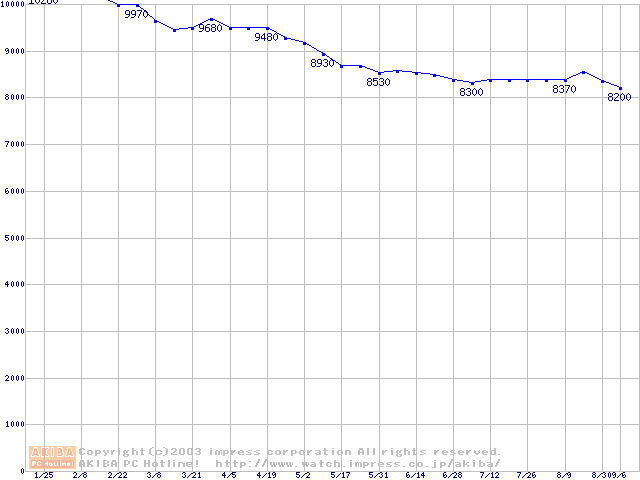 | [↓次グラフ]: | HDD 100GB以上(5400rpmクラス)の最安値推移 |