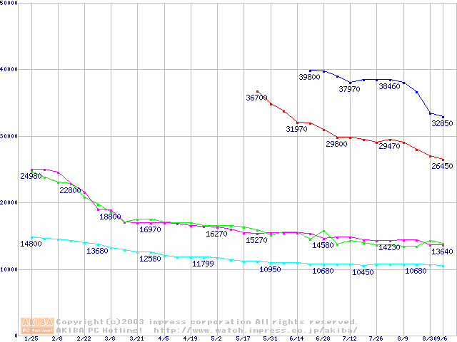 | [↓次グラフ]: | HDD 30GB~40GB未満(7200rpmクラス)の最安値推移 |