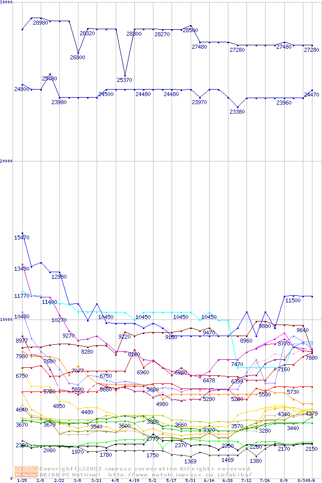 メモリ主要製品の最安値推移
