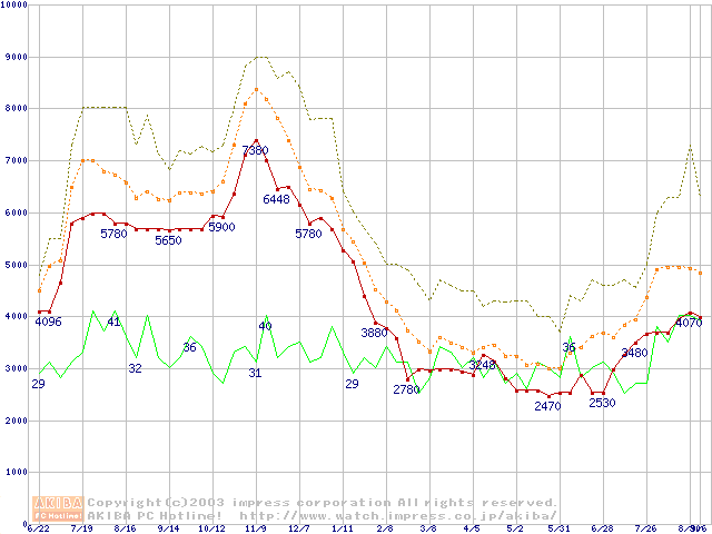 メモリ主要製品の最安値推移