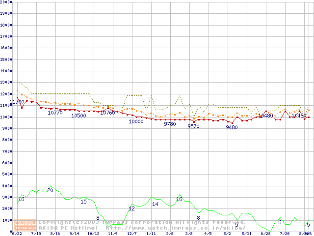 MKシリーズ (9.5mm,4200rpm,2MB,FDB,20GB/Platter)の最安値推移