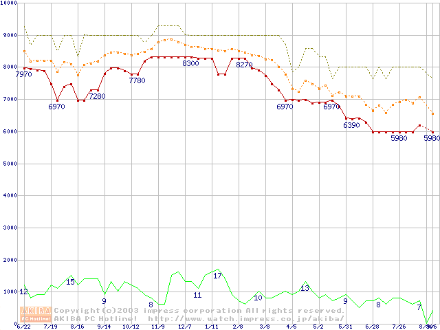 WD Protege (5400rpm,UltraATA/100)の最安値推移