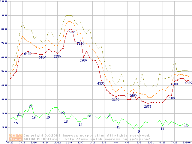メモリ主要製品の最安値推移