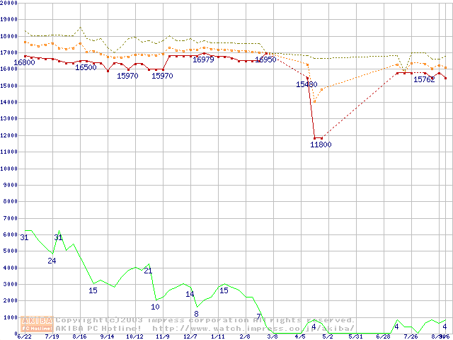 Pentium 4 1.60A GHz リテールパッケージの価格推移