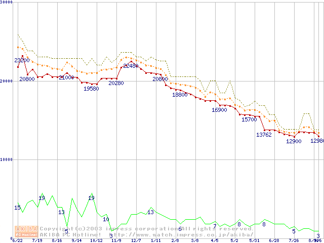 WD Caviar(Special Edition) (7200rpm,UltraATA/100,8MB)の最安値推移